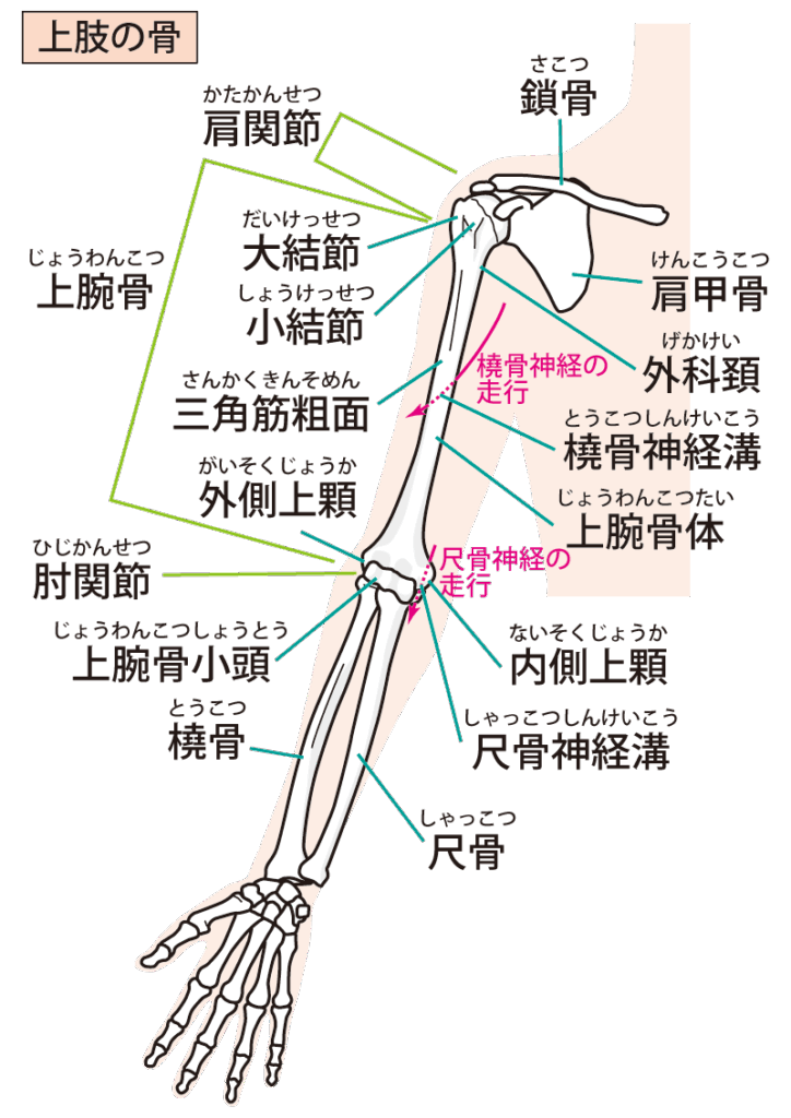 肘関節の内側上顆に付着する筋肉に炎症がおきると上腕骨内側上顆炎で通称ゴルフ肘と呼ばれています。