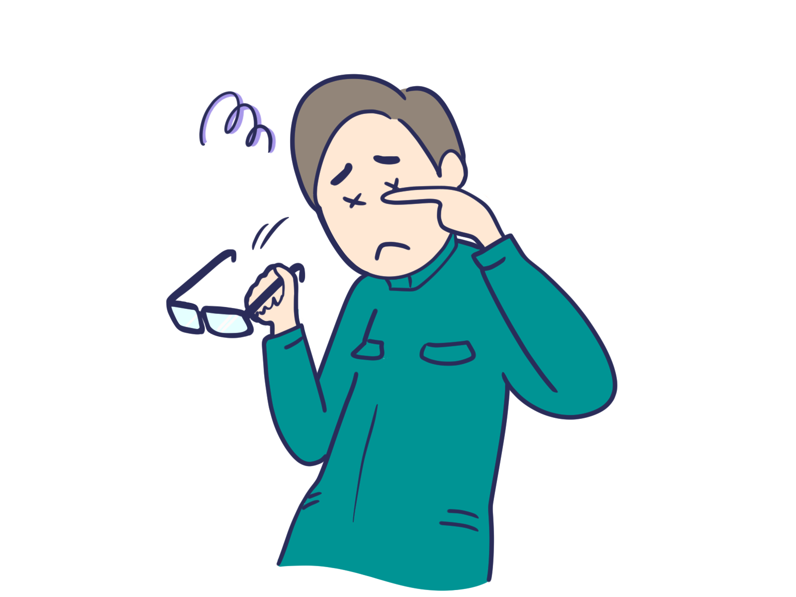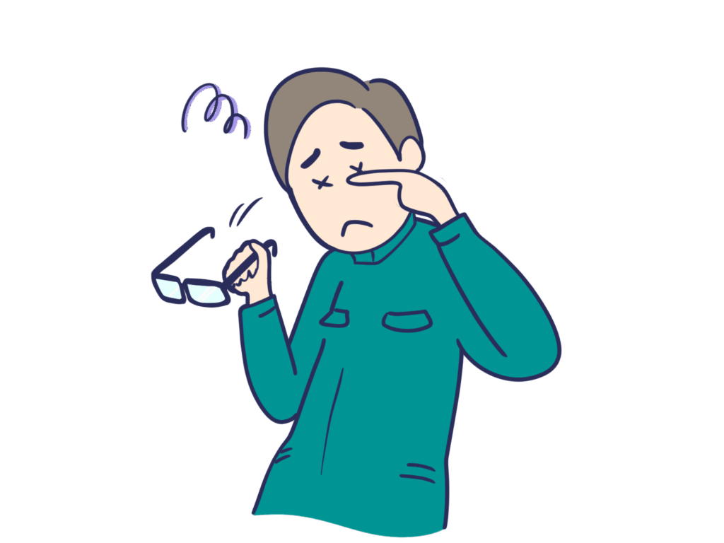 度の合わない眼鏡を使用していることや、老眼が進んでいることに気づかず過ごすことでも眼精疲労は起きます。
